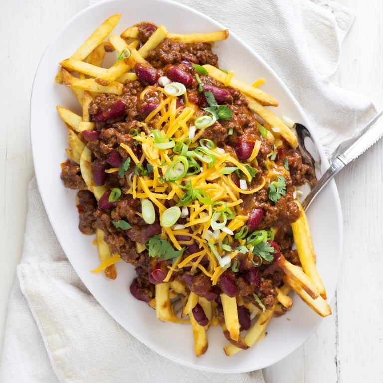 Ensure fries are fully cooked and crisp before topping. Serve immediately after baking, and don't overload with too much chili.