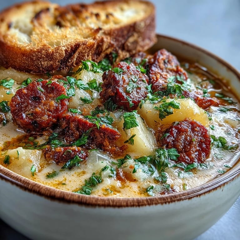 This soup keeps beautifully in the fridge for up to four days, stored in an airtight container once it's cooled to room temperature. I reheat it gently on the stove over low heat, adding a splash of stock or water if it's thickened up overnight. The flavors deepen after a day, and the potatoes soak up even more of that smoky chorizo richness. If you've added cream, it may separate slightly when reheated, but a quick stir brings it back together without any trouble.