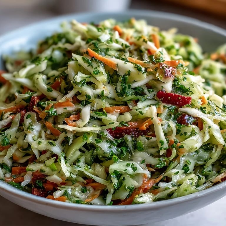This slaw is happiest alongside something rich or smoky—grilled sausages, charred fish, or pulled pork all become better when you have something this bright and crunchy to cut through them. I've also used it as a topping for sandwiches and as part of a cold lunch plate with cheese and leftover proteins, and it works equally well in both situations. The point is that it's flexible enough to fit wherever you need something alive and refreshing, but confident enough to hold its own without any supporting cast.