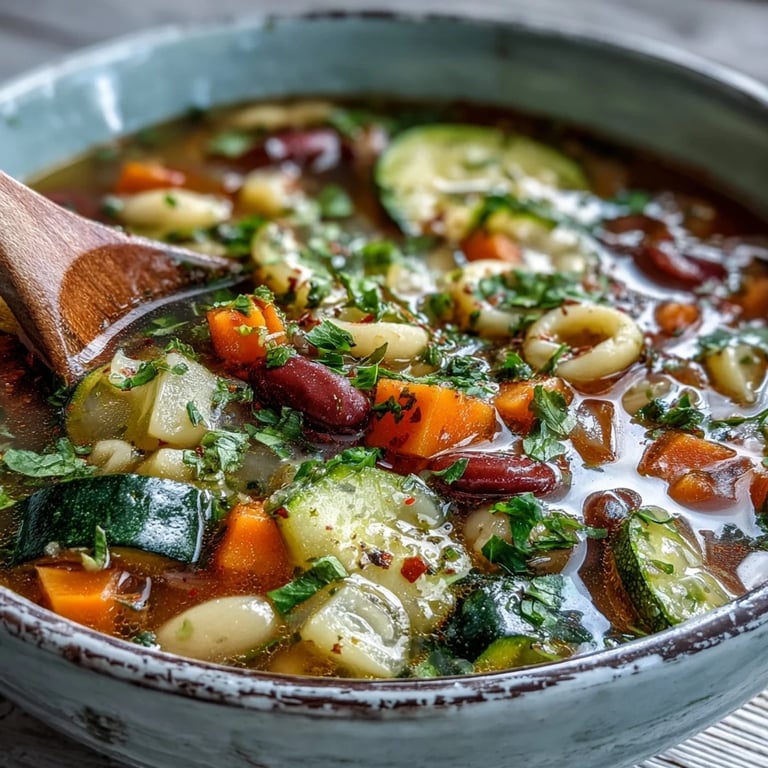 Save to Pinterest There's something magical about the way minestrone fills your kitchen with warmth on a chilly afternoon, the kind of smell that makes you pause whatever you're doing and just breathe it in. I discovered this soup wasn't about perfection or following rules too strictly, but about opening your pantry and using what the season handed you. My neighbor Maria once told me that her grandmother made minestrone differently every single time, and that was the whole point. It taught me that soup doesn't need to be complicated to be deeply satisfying.